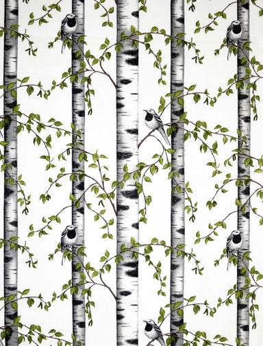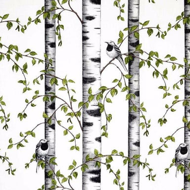 View full detailsFabric Width: 150cm Material: 100% Cotton Pattern Repeat: 64cm A grove of Birch trees in a Swedish forest with Great Tits nestling among the leaves...