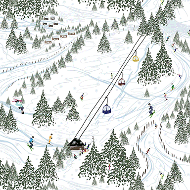 Fun on the slopes Designed by Louise Videlyck Just Go (Bare åk in Swedish) reflects a chilly winter day on the ski slope among fir trees,...