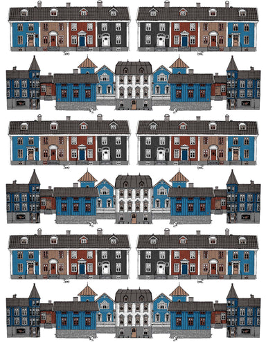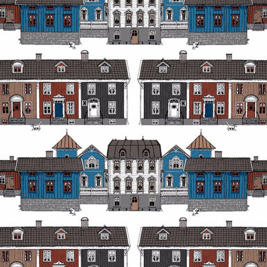 View full detailsDesigned by Mialotta Arvidsson-Mars this fabric features charming rows of terraced Swedish houses complete with a curious cat! Perfect for curtains...