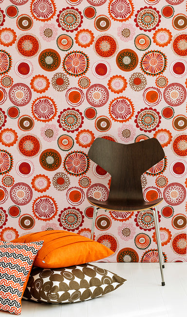 Bold stylised flower heads create a retro feel to this stunning fabric. Lovely colour combinations of red, orange and pink make this a perfect cho...
